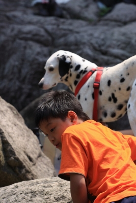 过了一会儿太阳出来了,岩场也热闹了起来,瞧还有上山遛狗的呢。。。