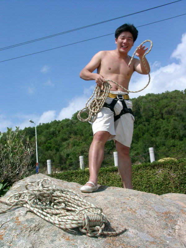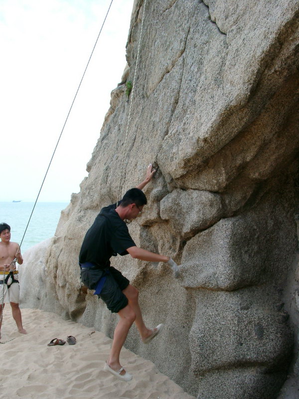 第一次野外攀岩在环岛路,现在看来应该叫抱石,或者叫顶绳抱石,因为高度应该只有5~6米。