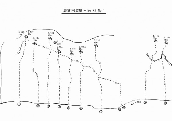 磨溪攀岩线路自2002年开始开线到现在.线路每年都在增加。线路的遍号有点乱。有的线路经过长时间的攀爬关键的点在攀爬时被掰掉。改变了很多线路本身的难度。比较容易误导攀岩者对本线路的首攀。为了更合理。更安全的引导首攀者。攀岩指南每年对部分的线路难度和线路的编号做了调整。老线路上的挂片、膨胀钉、顶链经过多年的风吹雨淋都已经严重生锈了,有的挂片和膨胀钉经过无数次的冲坠也已经超负荷使用了.为了让大家以后爬的更安全,玩的更开心,陈贵文经常对线路进行检修.对经常冲坠和生锈的挂片、膨胀钉、顶链进行更换。