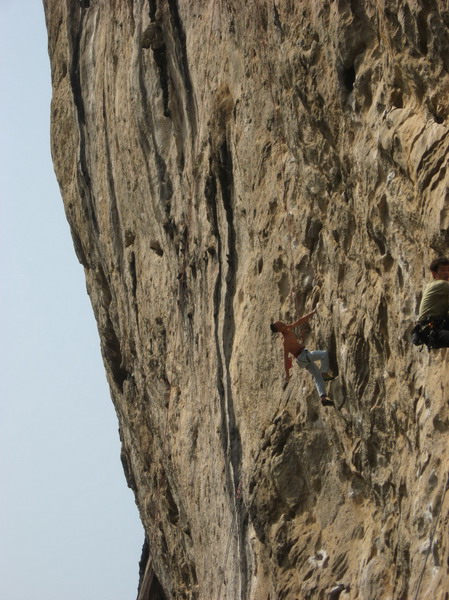 说说,大万和海豚,今天大万2把红了一条12c线后,又分段work了那条巨长的13bc的金汤力。海豚和青岛的郞郞搭档爬一条12b的线,好象4把红了。