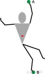 较低,你还可以手脚同点,用右脚跟挂在A点上,这也能保持平衡。
