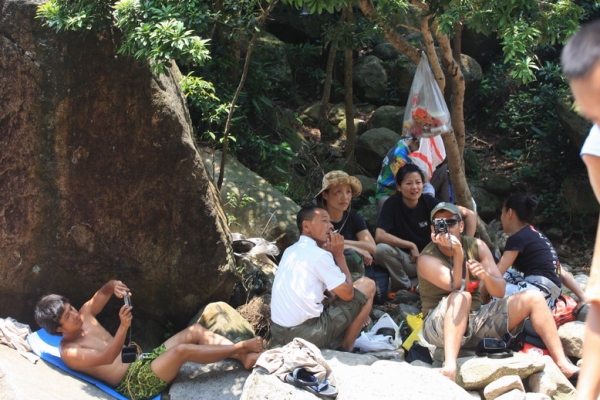 过了一会儿太阳出来了,岩场也热闹了起来,瞧还有上山遛狗的呢。。。