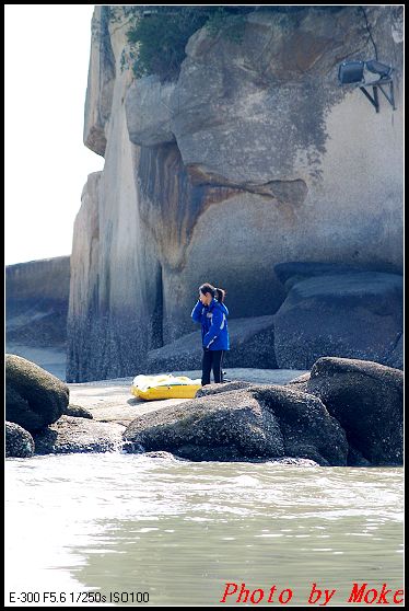由于熨斗石礁在对岸,非低潮时间需要涉水才能登陆,如果是满潮的话,则需要借助船只过渡才行,当然,你要愿意游过去也没问题 ,所以划船过渡成了今天来此"玩"攀的又一好玩的节目,特别是某男自告奋勇脱衣下水当"鸭子"为大伙当船夫,精神可嘉,并趁机展现足以让众女生为之狂呼的"冻人"曲线身材,最终还带多人私奔而去..........;P ;P ;P