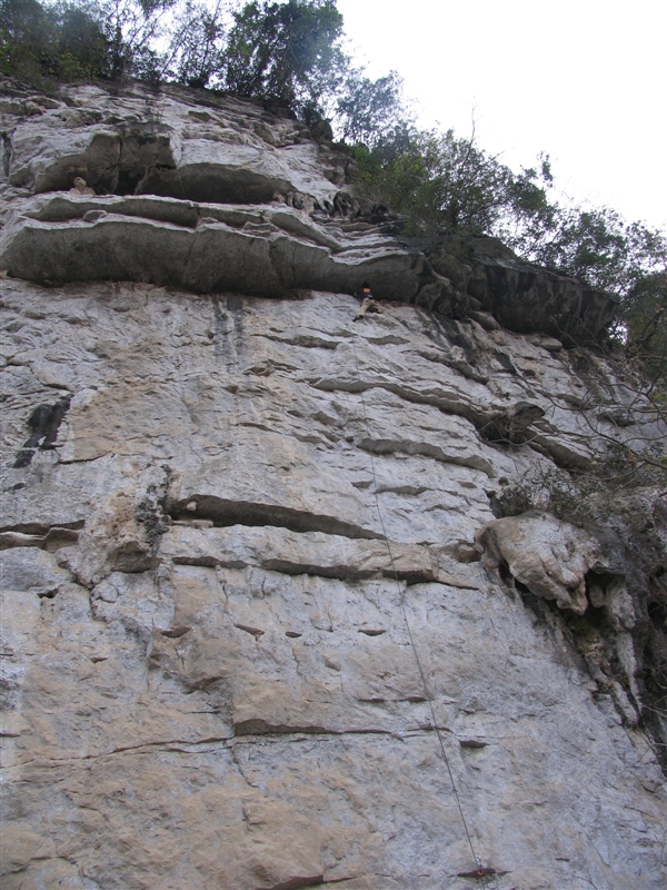 狮笼山也很好,靠着河边,不足之处就是脏了点。最近狮龙山还增加了一条两段的新线,12C/D+13?.很幸运去尝试新开的线路。虽然首攀是阿甘的,但是还是很开心