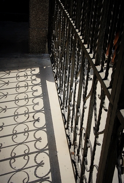 我到时 老刘刚进铁门 没钥匙进岩馆 于是 我看铁门的影子