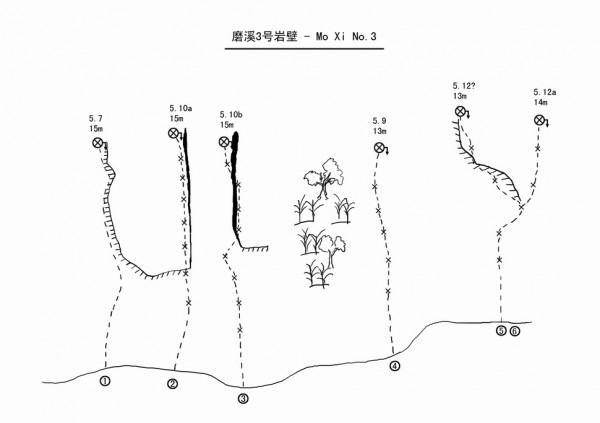 磨溪攀岩线路自2002年开始开线到现在.线路每年都在增加。线路的遍号有点乱。有的线路经过长时间的攀爬关键的点在攀爬时被掰掉。改变了很多线路本身的难度。比较容易误导攀岩者对本线路的首攀。为了更合理。更安全的引导首攀者。攀岩指南每年对部分的线路难度和线路的编号做了调整。老线路上的挂片、膨胀钉、顶链经过多年的风吹雨淋都已经严重生锈了,有的挂片和膨胀钉经过无数次的冲坠也已经超负荷使用了.为了让大家以后爬的更安全,玩的更开心,陈贵文经常对线路进行检修.对经常冲坠和生锈的挂片、膨胀钉、顶链进行更换。