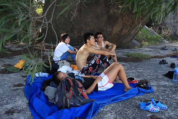 看上去 好像大万和袋鼠发现了石缝里的螃蟹