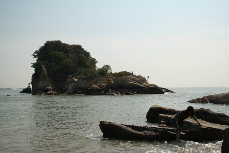 叮当MM在远望对岸礁石上2男