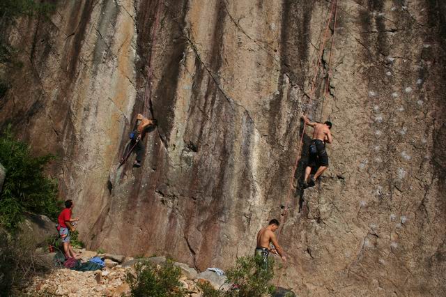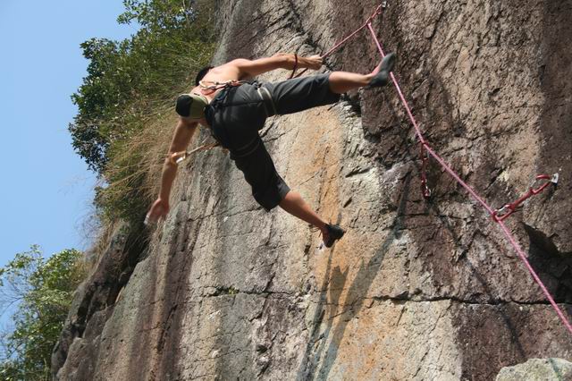 我感觉磨溪的岩壁够变态的,那在几十几百年前是个采石场,人工把山劈成那样了,经过岁月的洗礼,风雨的侵蚀,现在变成了一个绝好的攀岩场,但是,关键是那小点的,超级小、超级隐蔽,ON的概率真的太小了!