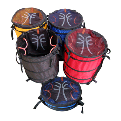 户外攀登绳筐,打开后呈桶状,内置装备挂环,小收纳袋,压缩后扁平,防水面料,结实耐用。